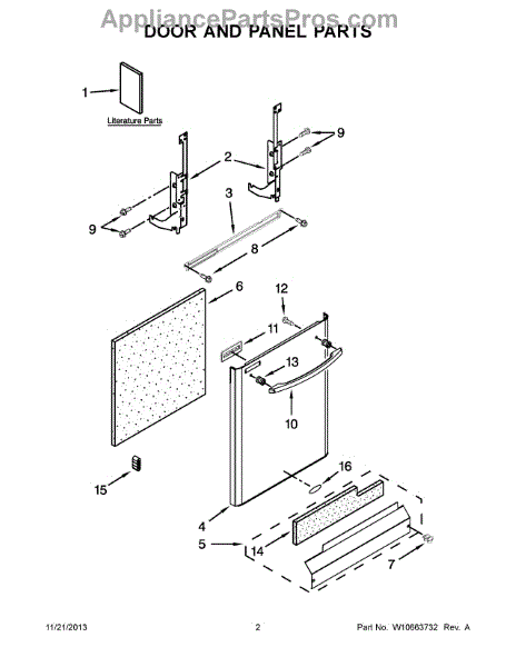 The Panel (BLK) is an OEM part for Whirlpool dishwashers. This black exterior panel is designed to provide a sleek and durable front surface for the dishwasher, enhancing its appearance and protecting internal components.