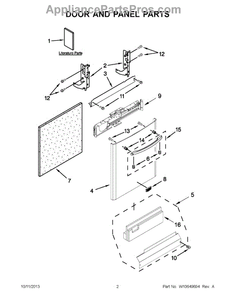 The Dishwasher Access Panel is an OEM part for Whirlpool dishwashers. This panel covers the lower front section of the dishwasher, providing a finished look while protecting internal components from debris and damage.