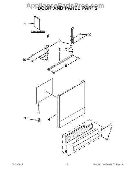 The Panel (BLK) is an OEM part for Whirlpool dishwashers. This black exterior panel is designed to provide a sleek and durable front surface for the dishwasher, enhancing its appearance and protecting internal components.