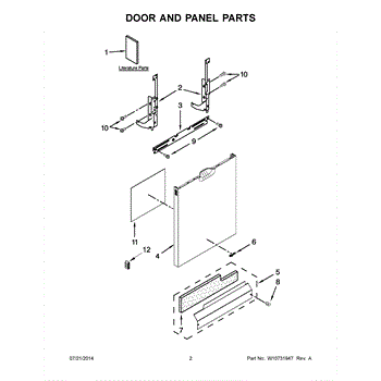 The Panel (BLK) is an OEM part for Whirlpool dishwashers. This black exterior panel is designed to provide a sleek and durable front surface for the dishwasher, enhancing its appearance and protecting internal components.