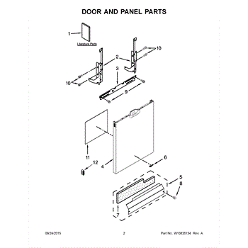 The Panel (BLK) is an OEM part for Whirlpool dishwashers. This black exterior panel is designed to provide a sleek and durable front surface for the dishwasher, enhancing its appearance and protecting internal components.