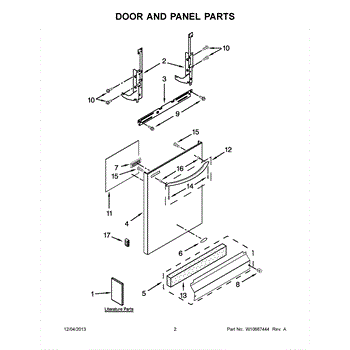 The Panel (BLK) is an OEM part for Whirlpool dishwashers. This black exterior panel is designed to provide a sleek and durable front surface for the dishwasher, enhancing its appearance and protecting internal components.