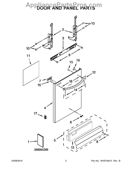 The Dishwasher Access Panel is an OEM part for Whirlpool dishwashers. This panel covers the lower front section of the dishwasher, providing a finished look while protecting internal components from debris and damage.