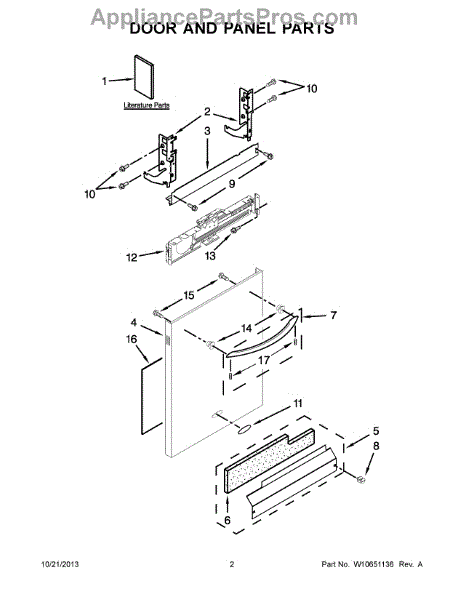 The Panel (BLK) is an OEM part for Whirlpool dishwashers. This black exterior panel is designed to provide a sleek and durable front surface for the dishwasher, enhancing its appearance and protecting internal components.
