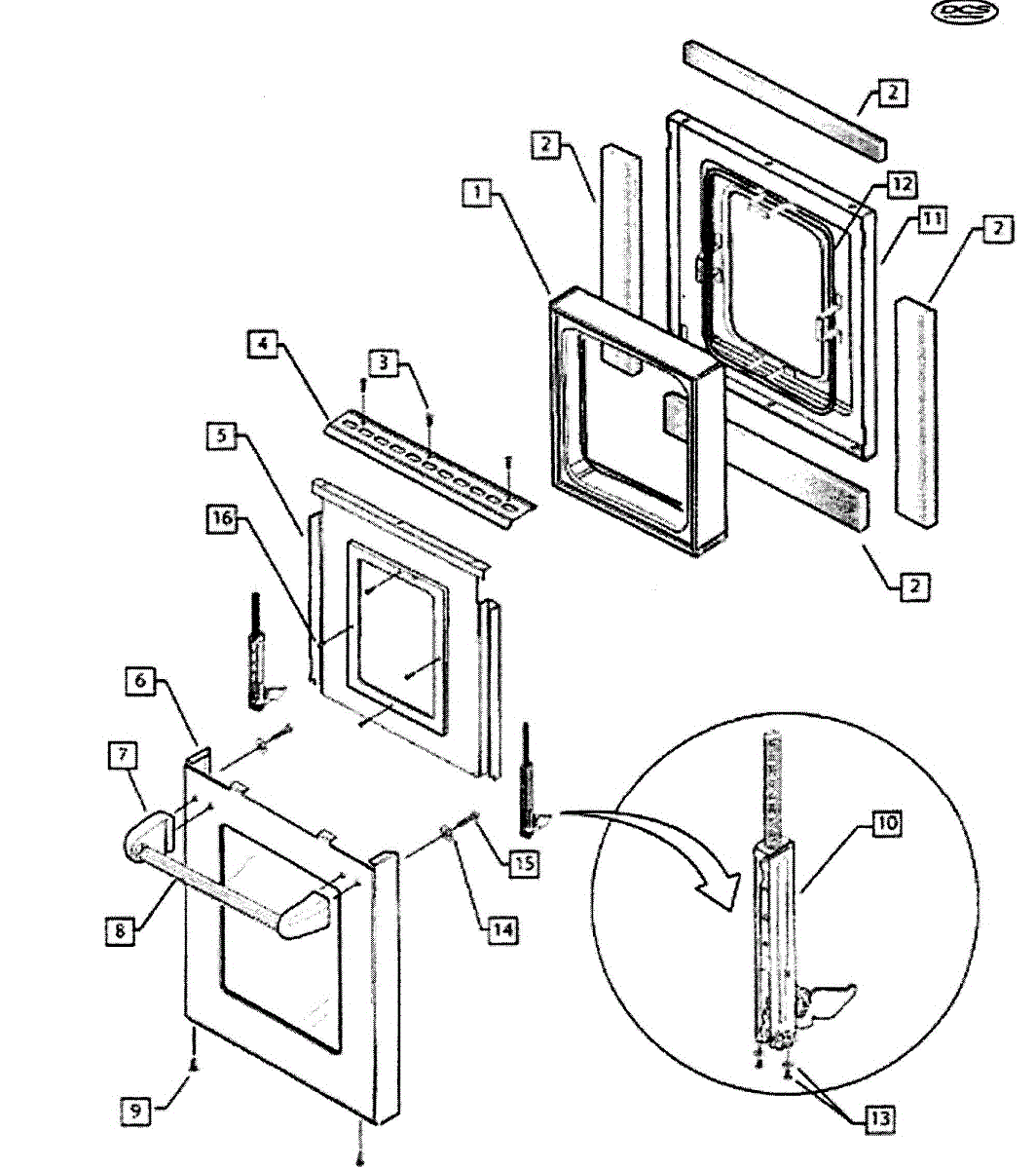 Replacement door handle for gas range. Installs on the front of the oven door for opening and closing. Order if your handle is cracked, broken, or missing.