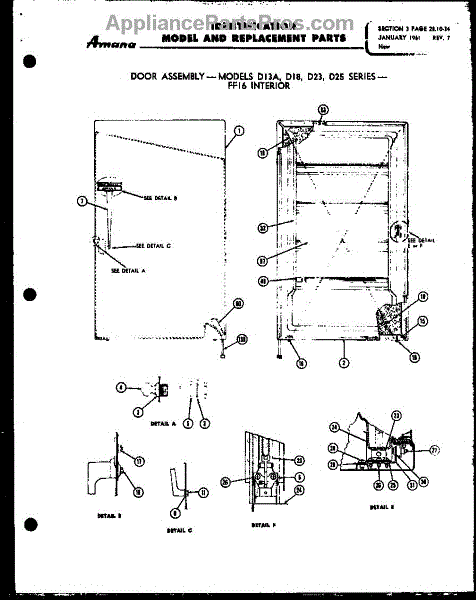 Parts for Amana FS16: Door Assembly (Ff16) (D18) (D23) (D23a) Parts