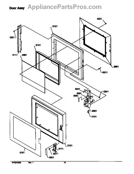 Parts for Amana RFS11SW2-P1312012M: Door Assy Parts