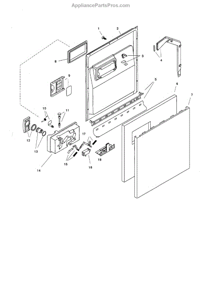 This outer door is the dishwasher's exterior front panel that restores the appliance's appearance and protects internal components from damage. It provides a finished look and replaces dented, scratched, or corroded panels. What it does