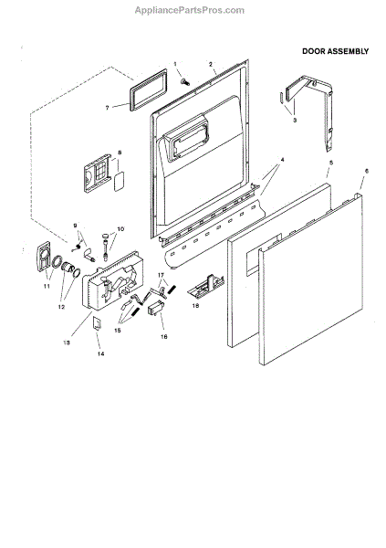 This outer door is the dishwasher's exterior front panel that restores the appliance's appearance and protects internal components from damage. It provides a finished look and replaces dented, scratched, or corroded panels. What it does