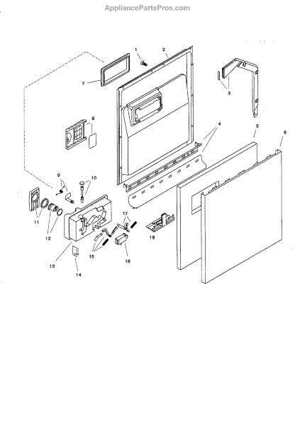 This outer door is the dishwasher's exterior front panel that restores the appliance's appearance and protects internal components from damage. It provides a finished look and replaces dented, scratched, or corroded panels. What it does