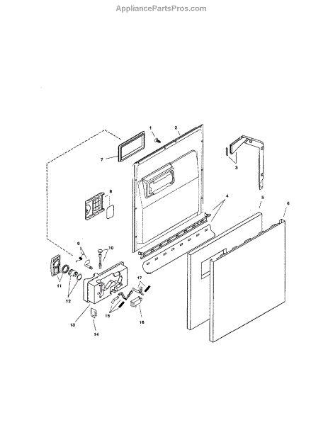 This outer door is the dishwasher's exterior front panel that restores the appliance's appearance and protects internal components from damage. It provides a finished look and replaces dented, scratched, or corroded panels. What it does