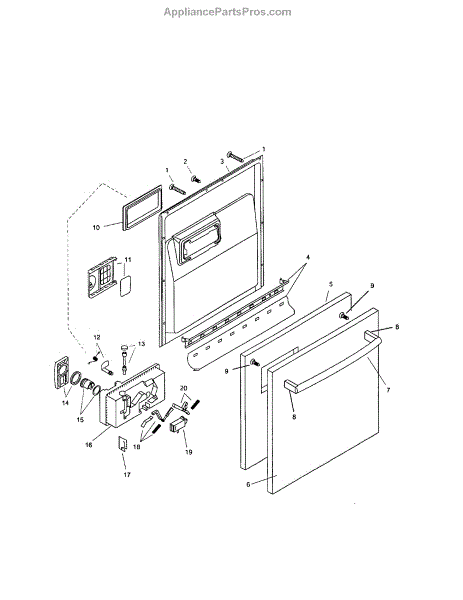 This inner door is the interior panel for a dishwasher door that protects internal components and provides a finished inside surface. Replacing a damaged inner door restores proper sealing and appearance. What it does: