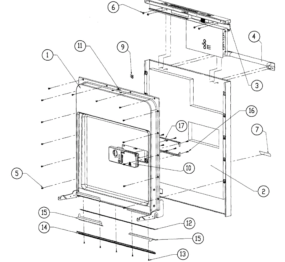 Seals the lower door edge to prevent water leaks during wash cycles. Replace if you notice pooling water or moisture escaping. Verify fit with your model.