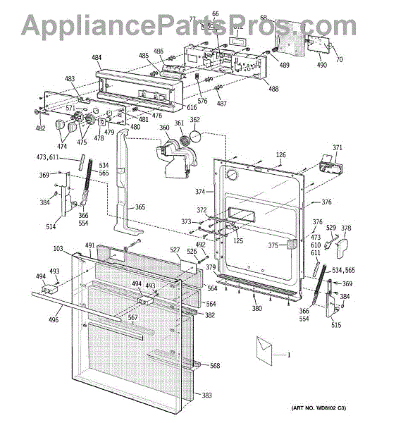 Parts for Ge ZBD6600G05SS: 01 - Door Assembly Parts