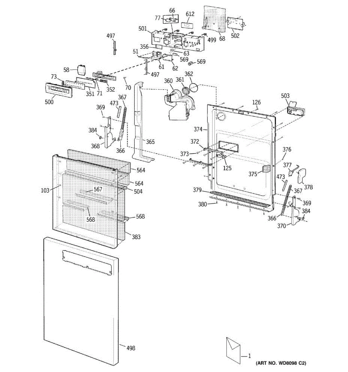 Upper door insulation for dishwashers. Installs inside the door panel to dampen sound and retain heat. Replace if torn, compressed, or missing.