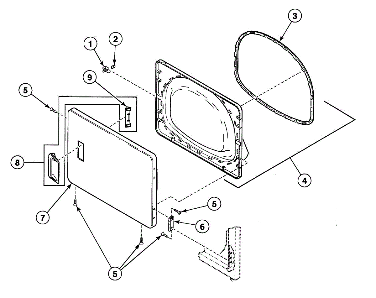 Parts for Speed Queen SDE307QF: Door Assy Parts