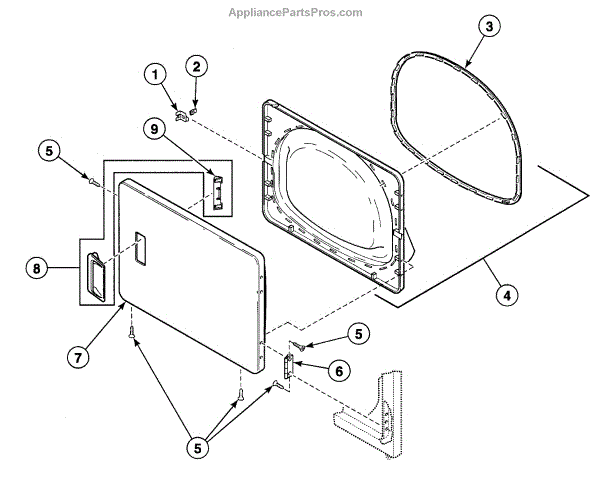 Parts for Speed Queen SDE707WF1500: Door Assy Parts