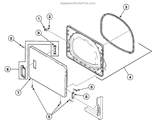 Parts for Speed Queen SDG109WF: Door Assy Parts