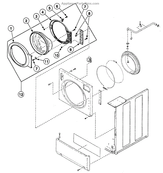 The Inner Door Bezel is an OEM replacement part for Speed Queen washing machines. It is a white plastic panel that mounts to the inside of the washer door providing structure and rigidity. The bezel acts as a backbone for attaching other door components like the door gasket, switches, insulation, and more. Symptoms of a bad inner door bezel include:
