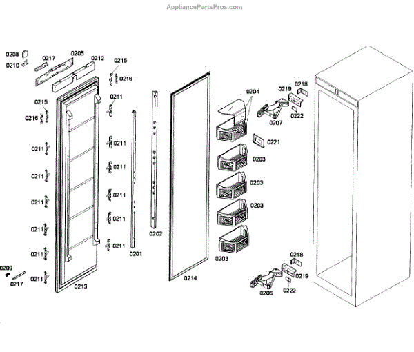 Door shelf rail for upright freezers. Secures shelves to the inner door panel. Replace if cracked, broken, or no longer holding shelves securely in place.