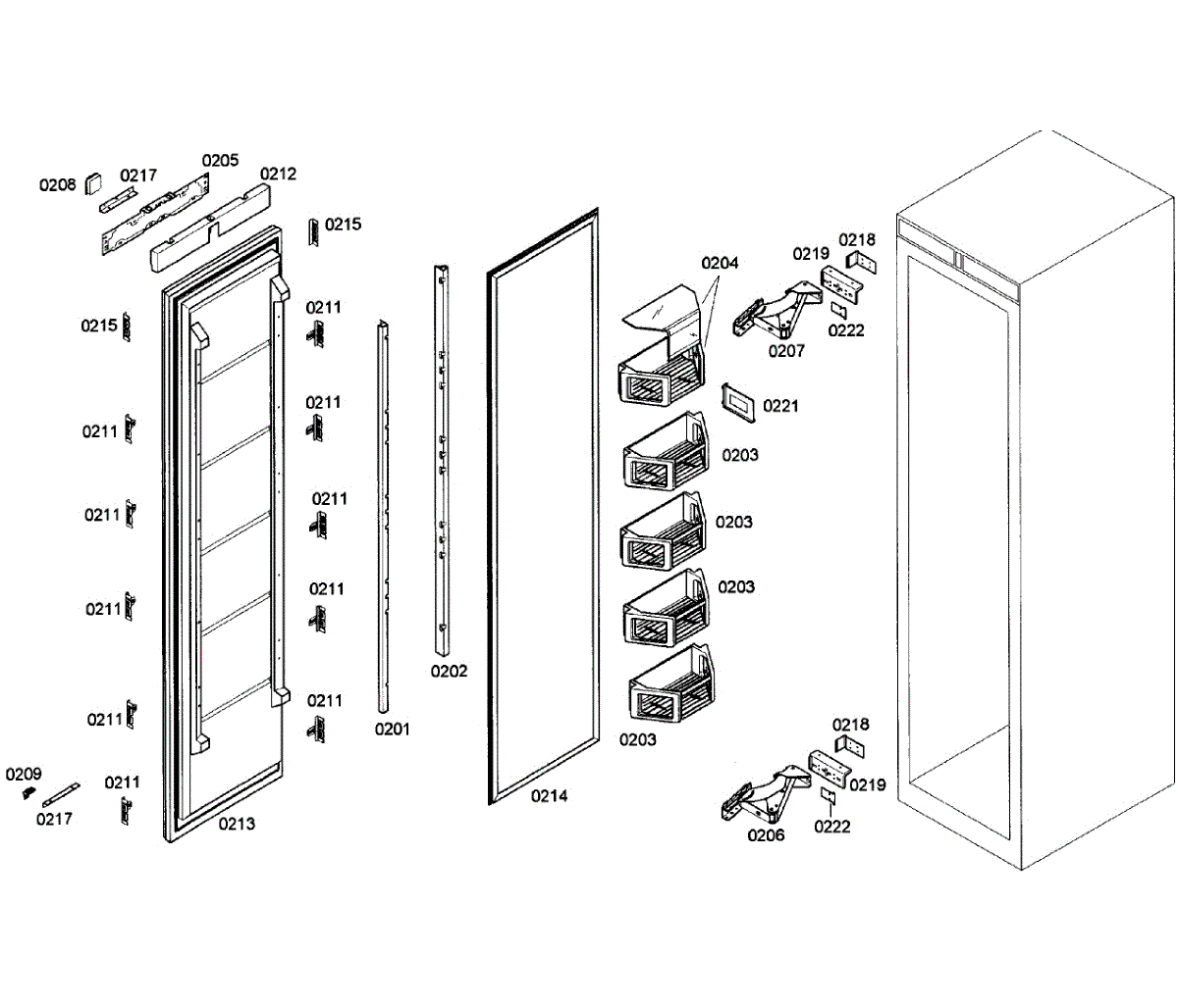 Door shelf rail for upright freezers. Secures shelves to the inner door panel. Replace if cracked, broken, or no longer holding shelves securely in place.