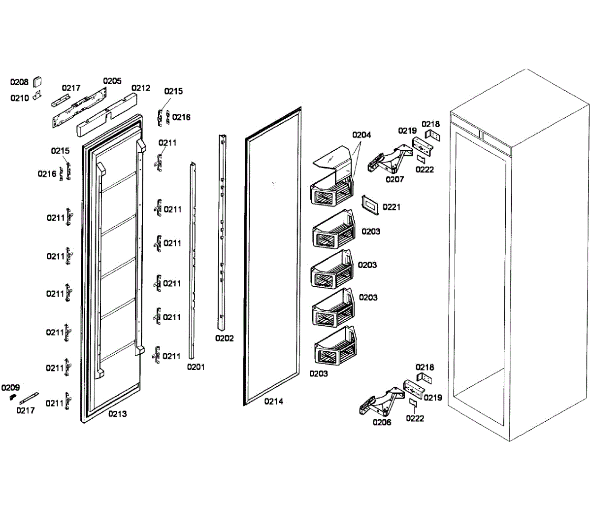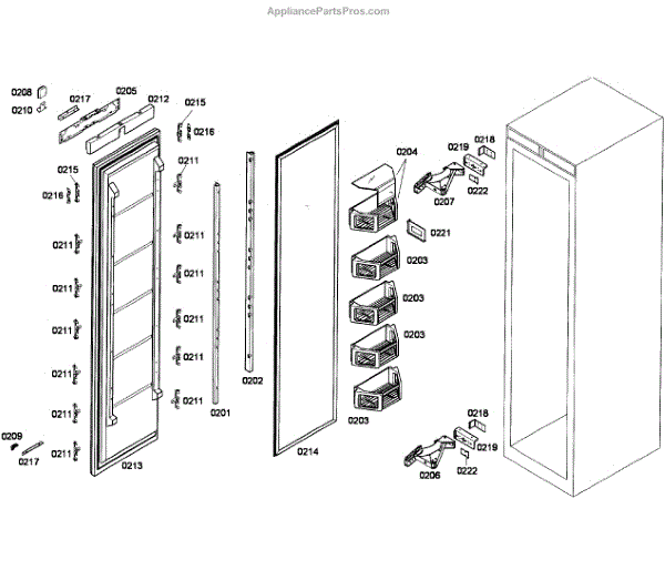 Door shelf rail for upright freezers. Secures shelves to the inner door panel. Replace if cracked, broken, or no longer holding shelves securely in place.