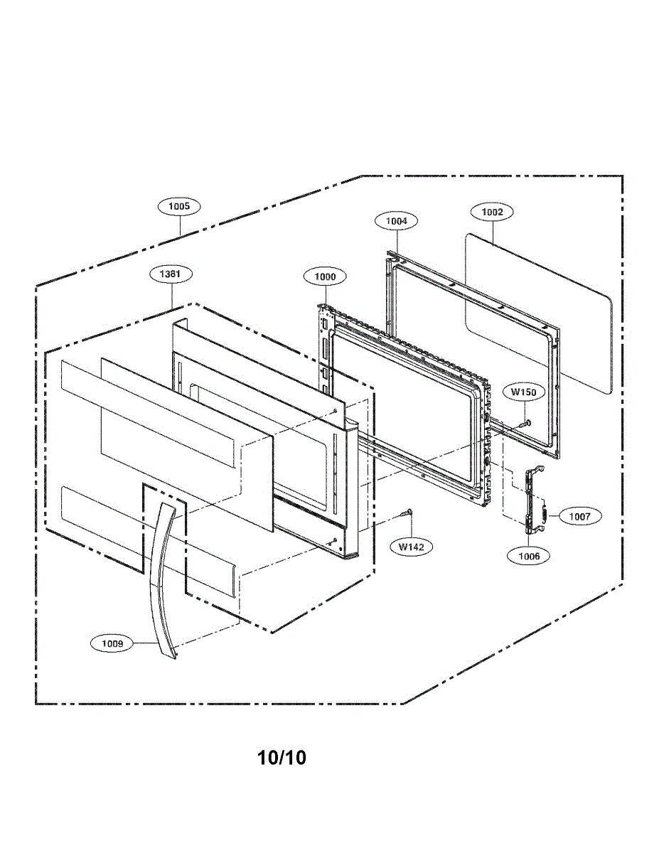 This door frame assembly replaces a damaged or cracked outer door frame to restore the washer/dryer door's appearance and structural support. It helps secure the door glass and maintain proper door alignment for safe operation. What it does: