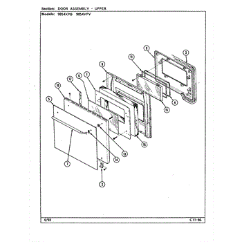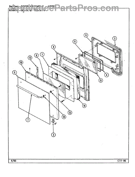 Spacer that fits between inner and outer oven door glass panels to maintain proper gap and alignment. Replaces missing, cracked, or damaged spacers.