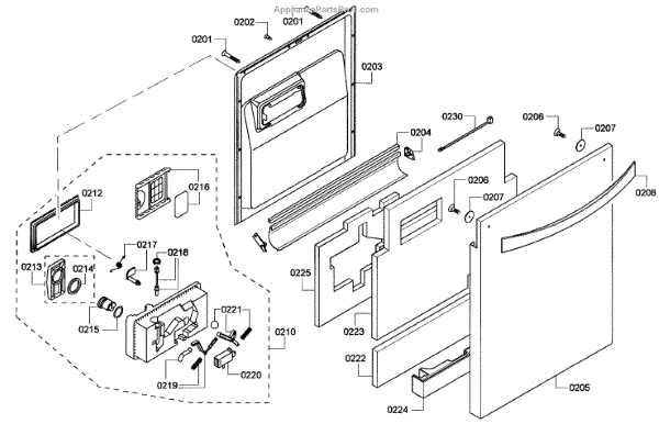 • Forms the interior surface of the dishwasher door and helps contain water during cycles