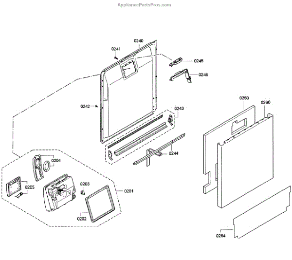 Parts for Bosch SGE63E06UC/50: Door Assembly Parts