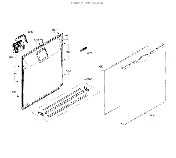 The Dishwasher Inner Door Panel is an OEM part for Bosch dishwashers. It is located inside the dishwasher door and protects internal components.