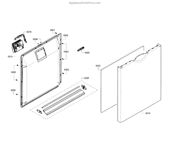 The Dishwasher Inner Door Panel is an OEM part for Bosch dishwashers. It is located inside the dishwasher door and protects internal components.