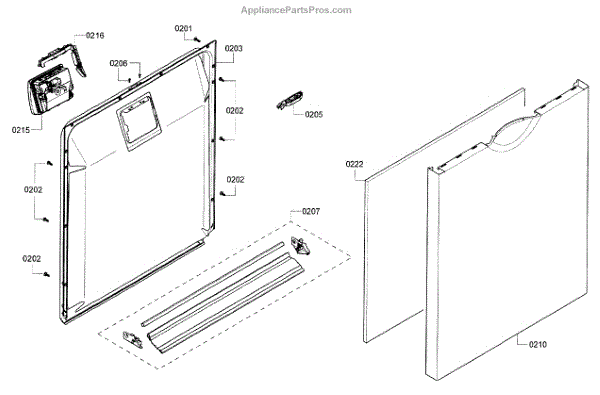 The door-outer is responsible for the overall appearance and aesthetic of the dishwasher door. It gives the door its distinctive look and houses all internal mechanisms.
