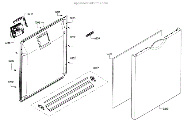 The door-outer is responsible for the overall appearance and aesthetic of the dishwasher door. It gives the door its distinctive look and houses all internal mechanisms.