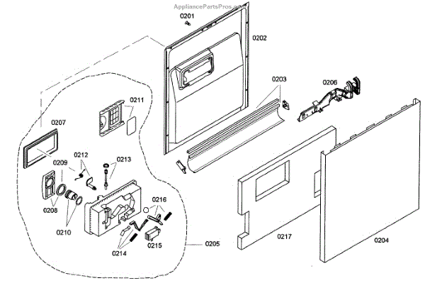 Parts for Bosch SHE42L16UC/43: Door Assembly Parts
