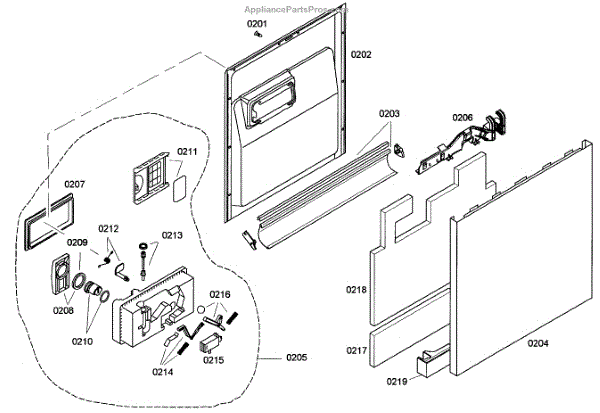 Parts for Bosch SHE43C05UC/47: Door Assembly Parts
