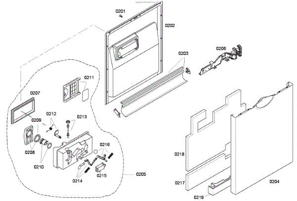 Parts for Bosch SHE43F05UC/53: Door Assembly Parts