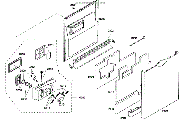 • Forms the interior surface of the dishwasher door and helps contain water during cycles