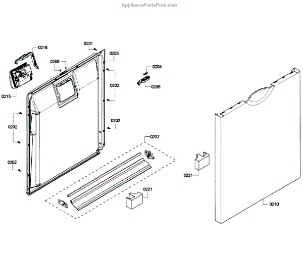 The Outer Door Panel is an OEM component specifically designed for select full-paneled Bosch dishwashers. It forms the durable outer shell of the protective door enclosure.