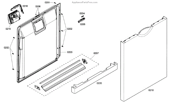 The Dishwasher Inner Door Panel is an OEM part for Bosch dishwashers. It is located inside the dishwasher door and protects internal components.