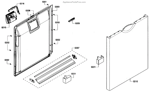 The Outer Door Panel is an OEM component specifically designed for select full-paneled Bosch dishwashers. It forms the durable outer shell of the protective door enclosure.