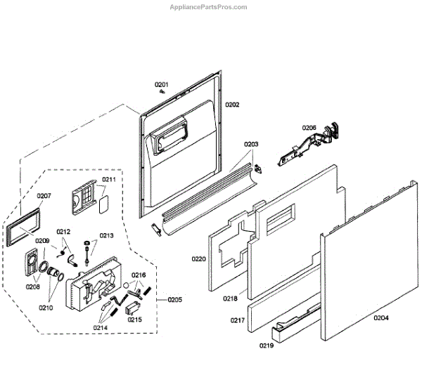 • Forms the interior surface of the dishwasher door and helps contain water during cycles