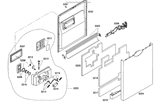 • Forms the interior surface of the dishwasher door and helps contain water during cycles
