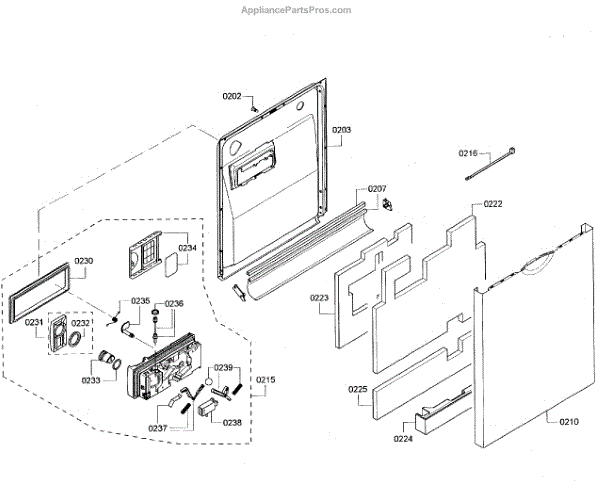 This inner door is the interior panel for a dishwasher door that protects internal components and provides a finished inside surface. Replacing a damaged inner door restores proper sealing and appearance. What it does: