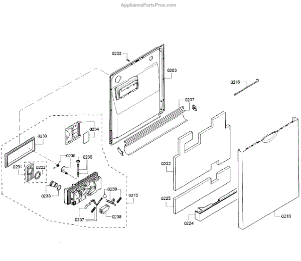 • Forms the interior surface of the dishwasher door and helps contain water during cycles