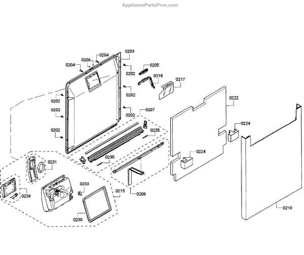 This outer door is the dishwasher's front exterior panel that restores the unit's finished appearance and protects internal components from damage. Replacing a damaged door helps maintain proper door alignment and exterior protection. What it does: