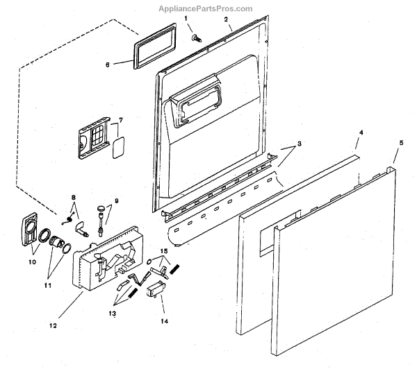 This outer door is the dishwasher's exterior front panel that restores the appliance's appearance and protects internal components from damage. It provides a finished look and replaces dented, scratched, or corroded panels. What it does