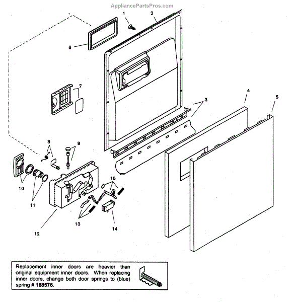This inner door is the interior panel for a dishwasher door that protects internal components and provides a finished inside surface. Replacing a damaged inner door restores proper sealing and appearance. What it does: