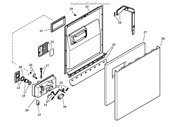 This outer door is the dishwasher's exterior front panel that restores the appliance's appearance and protects internal components from damage. It provides a finished look and replaces dented, scratched, or corroded panels. What it does