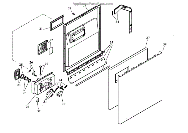 This outer door is the dishwasher's exterior front panel that restores the appliance's appearance and protects internal components from damage. It provides a finished look and replaces dented, scratched, or corroded panels. What it does